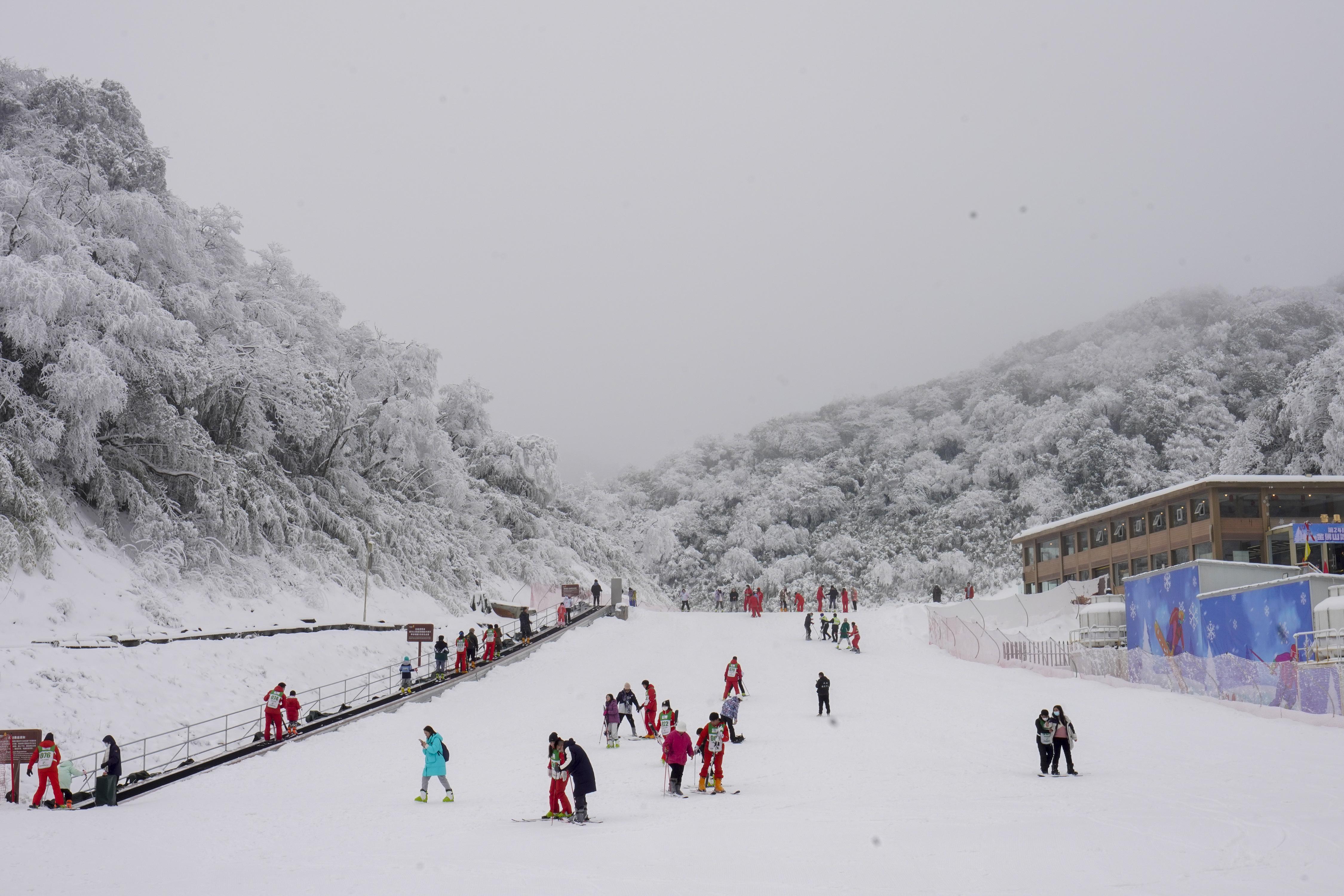 1月1日,在重庆市南川区金佛山景区滑雪场,游客在体验雪上运动。新华社记者刘潺摄