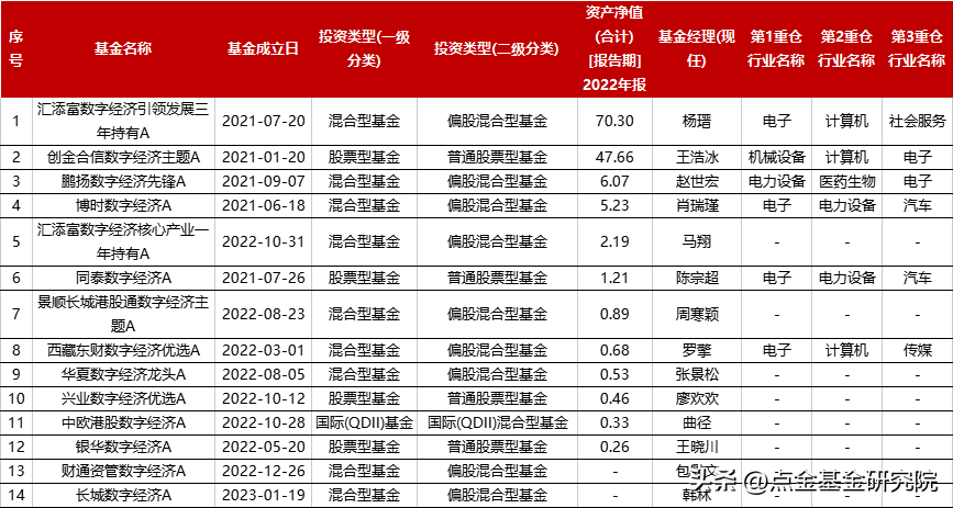而被动基金只能获得行业的贝塔收益。通过对于基金名称中带有“数字经济”关键字的进行检索,可以得到以下一些数字基金主题的主动基金。