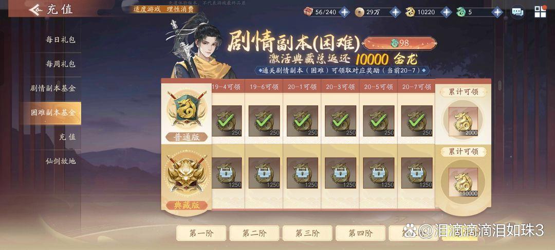 想要玩的快乐,每个月大小月卡,战令要买,30+50+128,每天8元体力要买(这个前期很重要,前期是指96级之前),副本基金先不要氪,等你以后有活动金龙不够了在氪,这个是保障