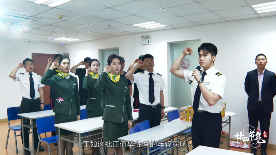 摄制组首先来到上海民航职院,作为中国民用航空局四所直属高校之一,每年都有无数怀揣民航梦想的年轻人来到这里。乘务员飞上蓝天服务旅客之前,需要在这里学习包括综合知识、客舱安全、机型设备、应急生存、应急医疗、客舱服务理论、模拟航班、客舱专业化形象等10多个科目、50多个课程门类,练就扎实过硬的的业务技能,用专业的水准服务每一位旅客。
