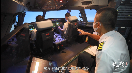 地处东海之滨的春秋飞行培训中心,是春秋航空飞行员培训基地,目前拥有6台全动模拟机,满足春航飞行员进行全天候飞行训练需求。影片中飞行学员张明帅正在操作模拟机进行A320机型初始改装训练。对于他来说,进入航空公司担任副驾驶参与飞行前,初始改装训练是必不可少的训练科目。即将入队的张明帅通过辛勤的努力,收获了代表“知识、技术、专业”的飞行员三道杠,正在往代表“责任”的第四道杠继续努力耕耘。