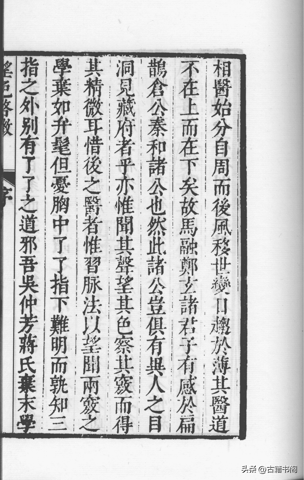 书名:《望色启微》编著:清.蒋示吉编年代:清康熙年刻本页卷:430页3卷大小:280M米数:20简介:《望色启微》共3卷82论。其中第一、二卷60论,基本以勾、摘《灵》、《素》的望色部分,加叙加议,予以论说。如“五色所自生”、“五色配脏”、“五色主病法”、“望色胃气不死论”、“望色随人论”等。第三卷则是整段摘抄《灵枢经》各论中的望色部分,后以“示吉曰”简单评述。共22论,其中18沦引自《灵枢经》各论原文,如“阴阳二十五人篇”、“卫气篇”、“论勇篇”、“本脏篇”、“师传篇”、“五阅五使篇”等。这是第一次从望诊的角度系统地条理《内经》中的有关内容,是中医重要的一部望诊专书,其后虽有汪宏的《望诊遵经》,但已经比《望色启微》的出现年代晚了200余年。蒋示吉最为专注的一部医著是《望色启微》,前文提到1644年避乱之际蒋示吉倾心于《灵枢·五色篇》,他感慨“非遇沧桑之劫,宁有至此乎,劫乎亦运乎!”因为经过一年多的时间,其书稿的大体构架已经成功。其后考订详细,斟酌尽善,稿经七易,历经28年,书成于康熙十一年(1672年)。是一部中医望诊专着。《望色启微》卷一以注释《灵枢》《素问》与望诊相关的经文为主。首篇《望色论》,引《素问·移精变气论》“色以应日,脉以应月”“上古使僦贷季理色脉而通神明”以及“帝曰:余欲临病人,观死生,决嫌疑,如日月光”三段经文为总纲。借曾子云:“德润身,则观人之貌即可以知其德”。蒋氏诘问:“而望人之色,独不可以知其病乎?”强调望色知病的重要作用。《望色启微》卷二专论最多,有望色分三因论、望色聚散论、望色浮沉论、望色随人论等。《素问·五脏生成篇》读到“缟裹”一词,似乎较为通俗易懂,其实不然,蒋示吉说:“所谓如缟裹者,犹太极混然合一之象也。”此乃根据《易·系辞上》:“易有太极,易生两仪。”经曰:“生于心,如以缟裹朱;生于肺,如以缟裹红。”蒋示吉云:“缟白绢也,经不直言五色,而言缟裹者,盖以平人五脏既和其脏之色,必待其旺而始荣于外,禀胃气而出于皮毛之间。”“是皆一团阳和之气,故为五脏外荣之象。”蒋示吉就是这样丰富了“望色”的内容。其谓吉色有三:明、泽、清;凶色有三:沉、枯、夭,是其经验之谈。《望色启微》卷三辑录《灵枢》《素问》原文有30篇,与“五色”密切相关,《素问》仅占2篇。蒋示吉在辑录《灵枢·论勇》小段文字后加按曰:“张长沙为伤寒鼻祖,其《太阳篇》首列中风三百九十七法……岂不以‘风为百病之长欤?’”蒋示吉列举风客于上、下、表、里、背、肺、脾胃等14项症情,说的是“以《灵枢》望色部分,惟遵马氏(莳)图注而附于脉法中”,强调了望诊与脉诊亟需紧密结合。在辑录《灵枢·五阅五使》有关经文后,蒋示吉按语云:“五脏隐于中,其官列于外,望其官以知其脏如烛照耳。《周礼》:‘疾医以五气、五声、五色视其死生。’”重视望诊在临床上综合运用,蒋示吉著文时与读者互动,也是其特色。《望色启微》,清.蒋示吉编,清康熙年刻本。中医系列,全书共430页3卷,总容量约为280M。更多中医
