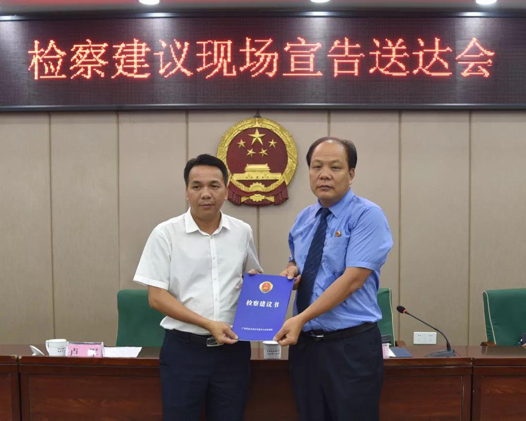 ●2019年9月3日,岑溪市检察院就督促行政机关严格、规范、科学管理稀土开采工作,向岑溪市人民政府公开送达检察建议书。该案检察建议书的发出与判决的宣告,是检察机关充分发挥公益诉讼监督职能,守护国家稀缺战略资源、保护绿水青山的重要成效。