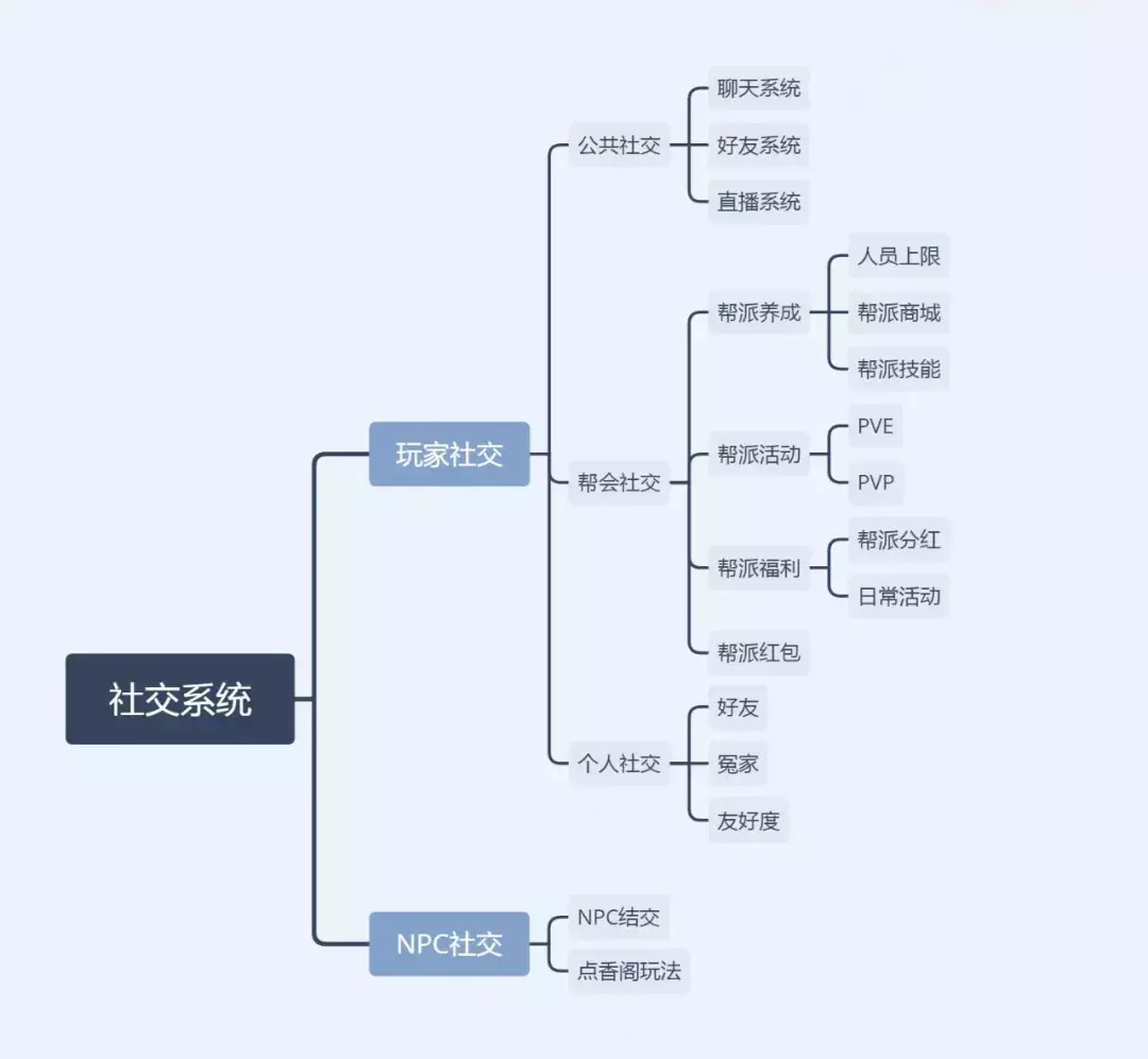 加入帮派是接取帮派任务、势力任务、进入帮派活动副本和参与帮战的前提。《楚留香手游》在帮派系统中还附加了额外的帮派技能,通过提升帮派技能可以获得额外的战斗属性,也是引导玩家进入帮派的重要因素。《楚留香手游》里面很多副本都需要组队,在没有认识一些熟悉的人之前,最容易得到帮助的地方就是帮会。帮会PVE 活动玩法也设计得比较丰富,有平乐宴,帮派试炼和门客设宴等产出大量的资源;帮战,势力战玩法让玩家作为集体的一员通过PVP的方式,赢取比赛的胜利,胜利之后会根据贡献值结算奖励。正向产生收益,反向制造矛盾,完成RPG社交中最重要的闭环。