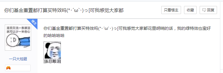 另外,说说比较开心的事情!比如我们这次江湖新生版的福利——基金重置!只要满足信誉条件,购买过一次其他基金的朋友可以再买一次新生基金,返利比例高达8.8倍,美滋滋~不少小伙伴已经开始讨论要用这笔基金干什么了!不管是买特效还是点修为,或者埋佛卖古董赚钱,怎么开心怎么来,实力上演有钱人的快落~