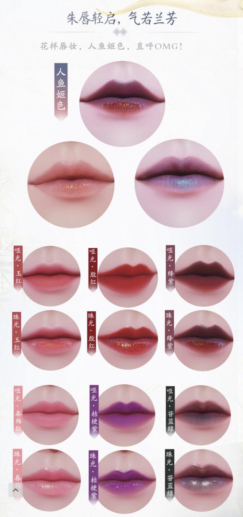 当然,让玩家纠结的不止"花基金"这件事,新版本的捏脸也是让不少外观党纠结了半天,毕竟这次的妆容选择真是太多了!现实中试问哪位小仙女会满足几支口红呢?新生版捏脸系统突然上了这么多口红色号,这么多眼妆,对女侠们来说算是一种"甜蜜的负担"吧?!个人比较喜欢珠光殷红,有种涂上迪奥999,气场全开的感jio~
