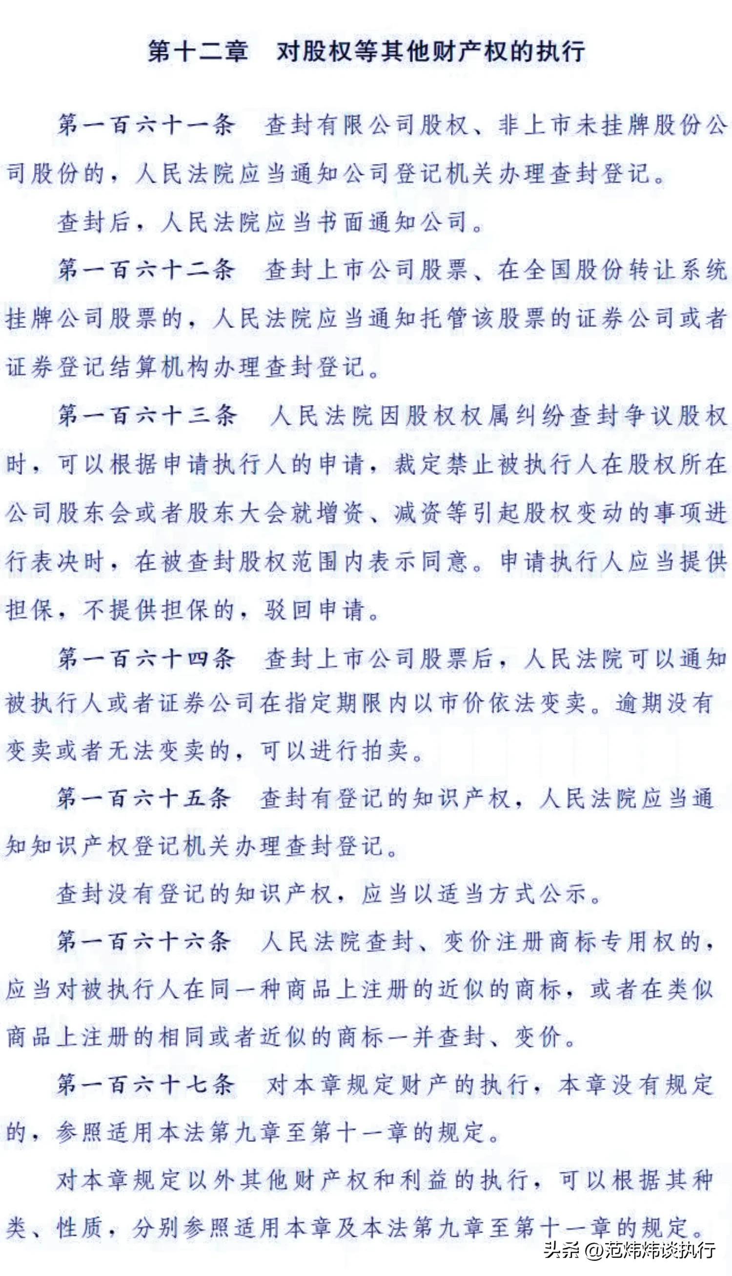 OK啦,草案第一百六十二条就讲到这里吧,明天咱们继续讲第十二章“对股权等其他财产权的执行”,看看关于股权、股票、知识产权等一些权该如何执行,小伙伴们敬请期待吧。