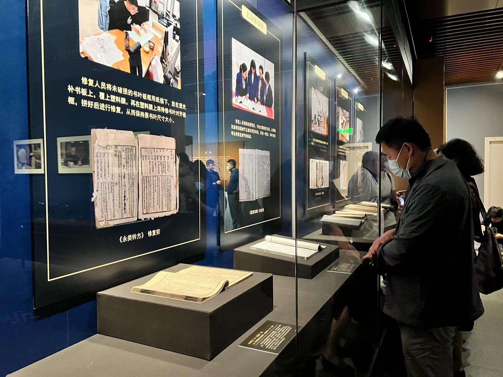 5月16日,由国家图书馆(国家古籍保护中心、国家典籍博物馆)与中国文物保护基金会、字节跳动公益三方联合主办的“同心护珍宝 聚力续华章——‘字节跳动古籍保护专项基金’成果展”开幕式在国家图书馆举行。展品包括《永乐大典》“湖”字册、元刻本《西夏文大藏经扉画》、元至顺二年(1331)刻本《永类钤方》及样式雷图档、黄河舆图和金石拓本等35种39件已修复完善的珍贵古籍。其中,国家图书馆藏《永乐大典》“湖”字册是这次修复的国宝级藏品,它的发现、回归与保护,是“中华古籍保护计划”实施以来政府相关部门与社会各界通力协作保护文化遗产的成功案例。