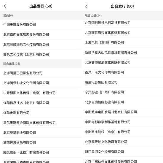 联合出品方则达到23家,包括阿里影业、腾讯影业、湖南芒果娱乐、耀莱影视、上海电影集团等。