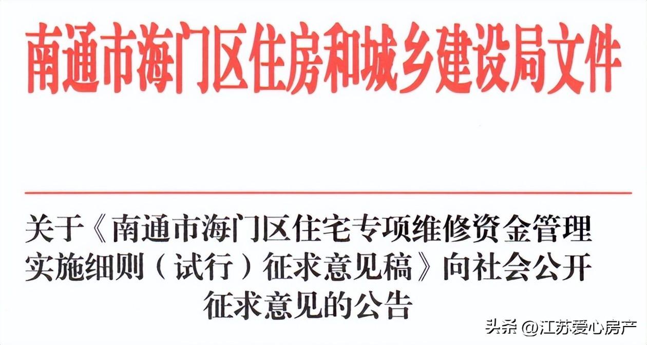 重点关注!南通海门即将发布新版《南通市海门区住宅专项维修资金管理办法》。